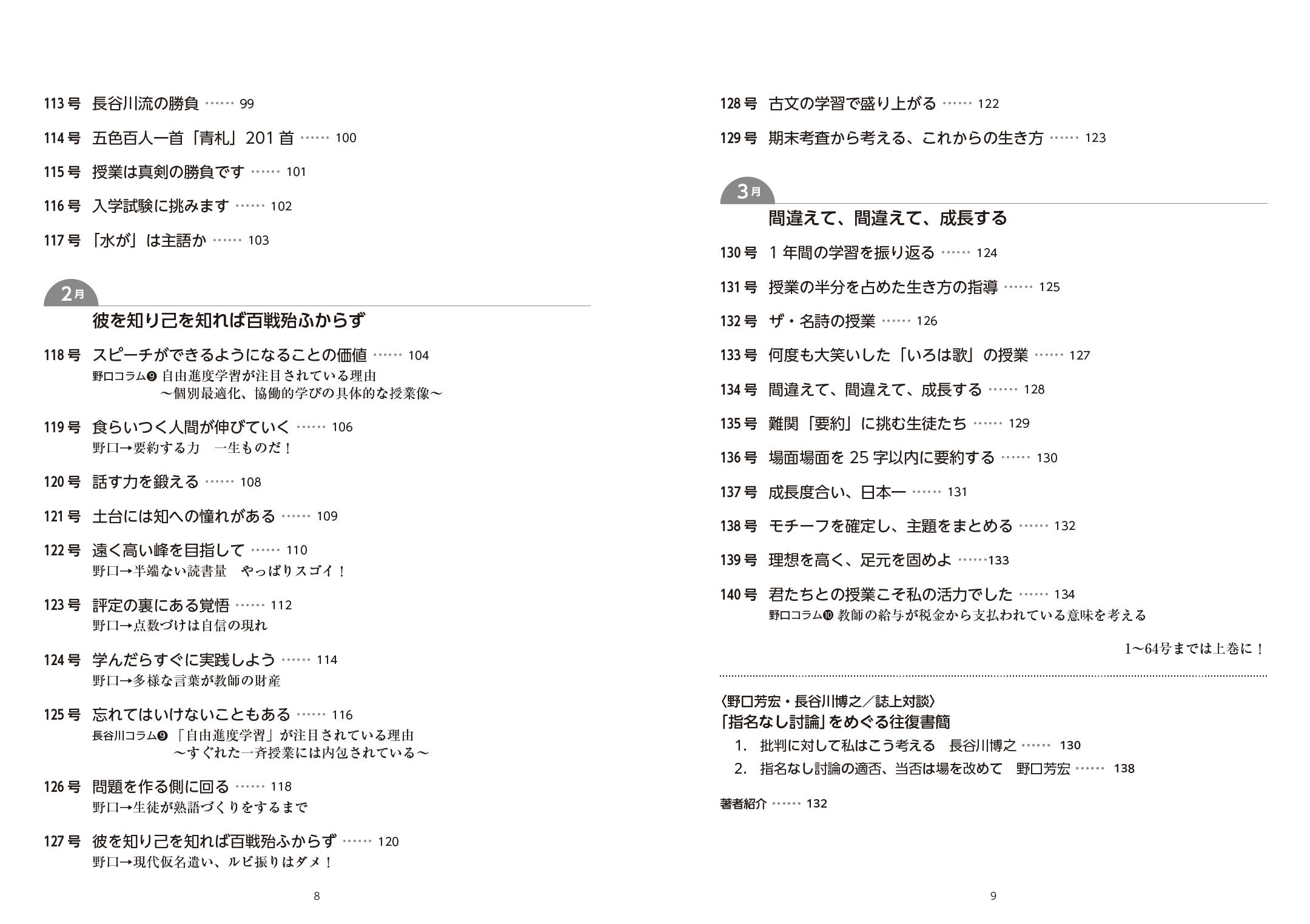 生徒が燃えるドラマチックな授業の展開で超人気教師・長谷川博之の1年間の授業の全記録を、国語界レジェンド・野口芳宏が、歯に衣着せぬ突っ込みで、「学力と人格」を磨く授業を提言。4月から3月まで、全280ページに及ぶボリュームを上下巻で刊行。
